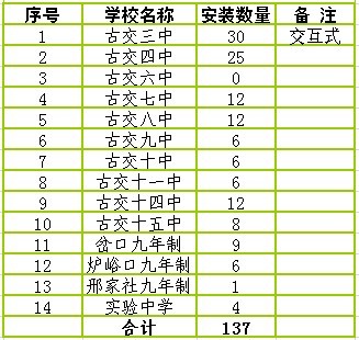 啟明星公司與古交市2012薄弱學(xué)校改造多媒體安裝數(shù)量統(tǒng)計表